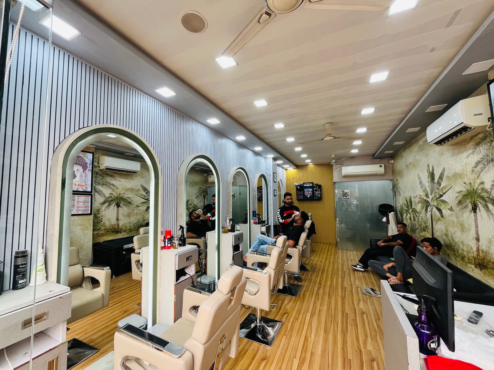 Relax in our thoughtfully designed waiting space, where glossy interiors, calm vibes, and comfort set the tone for your perfect salon experience.