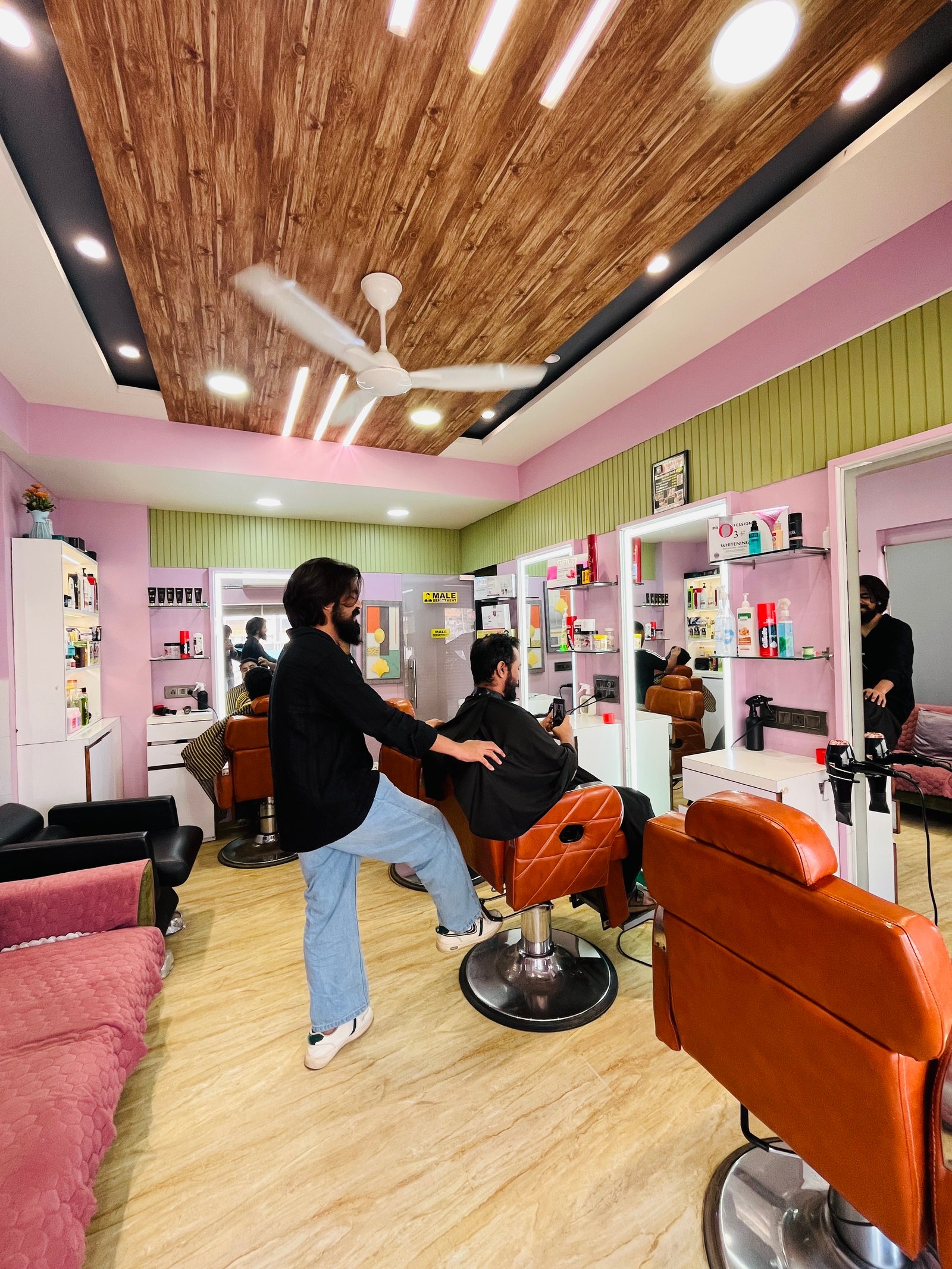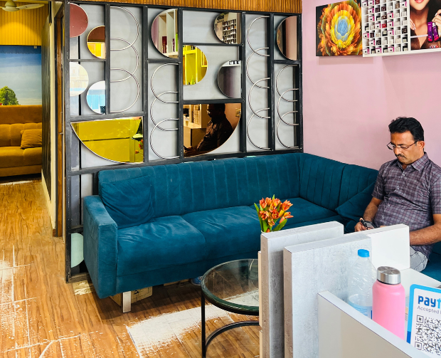 Relax in our thoughtfully designed waiting space, where glossy interiors, calm vibes, and comfort set the tone for your perfect salon experience.